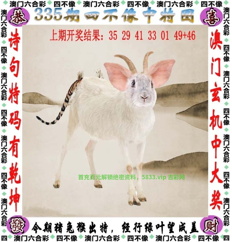 | 335期:七肖 | 牛狗兔猴鼠鸡猪 | 狗44中 |